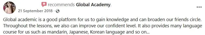 同时,旗下也创立了附属品牌GLOBAL ENGLISH ACADEMY, 致力于打造高效的剑桥英语课程给4-18岁的学生。课程采用 100% 全英文授课,确保学生不断练习,提高语言水平,让学生能够流利、自信地使用英语。采用独特的教法-实践性的演讲练习,轻松开口说英语!提供英国剑桥和牛津英语考试,让学生有机会考取国际文凭。